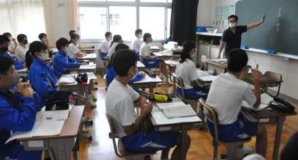 「俳句の可能性」という単元で、S先生の話を聞いています。