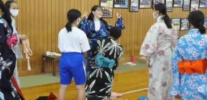 着付けをしているのは大人ではなく、講師を務める生徒です。