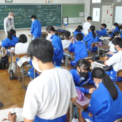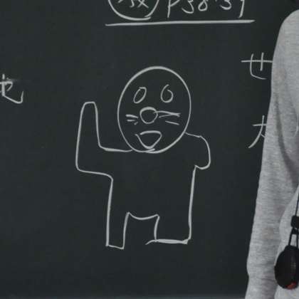 授業の最後にノートを提出しているところですが、黒板に描かれている絵が気になります。