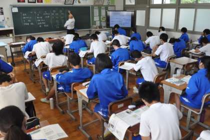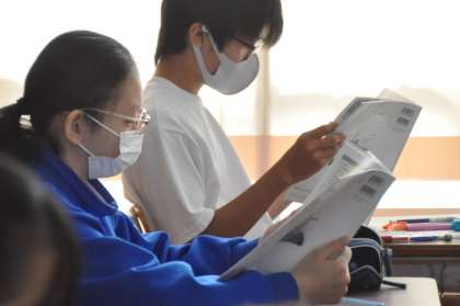 まるで国語の授業のように、全員で声を合わせて教科書の音読をしています。