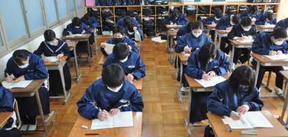 下は、音楽のテストに臨む2年A組の生徒たちです。