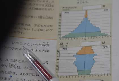 改めて教科書を見ると、ナイジェリアとは全く違い、日本の形は全然“ピラミッド”の形ではありません。