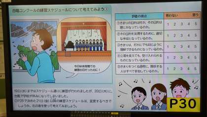 例題として、合唱コンクールの練習を不公平なく実施することについて示されており、頭をひねっています。