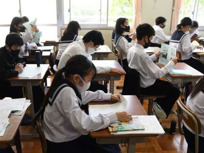 教室内では、野外教育活動に向けたこと、テスト勉強、生徒総会要項に目を通すことなど、自分ができることに取り組んでいます。