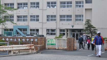 学年主任H先生を先頭に、みんなで新舞子マリンパークまで歩きます。