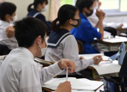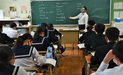 「Unit1 Part4」の学習で、M先生から「満足する(be satisfied)」という表現について説明を聞いています。