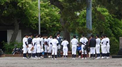 生徒主体で練習をする中、集合してT先生から話を聞く場面もあります。