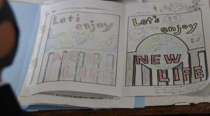 大きな画用紙にいきなり下がきをするのではなく、アイデアスケッチをしたり構成を考えたりと段階を経ています。