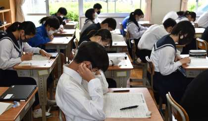 よく見ると、机上にタブレット端末を置いている生徒がいます。