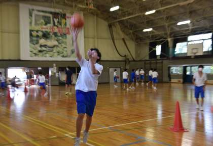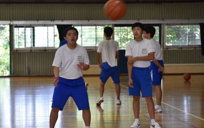 体育館で「バスケットボール」の学習に取り組んでいます。