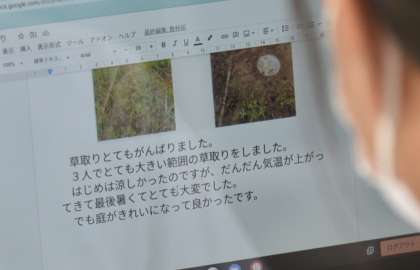 画像のように「草取り」「掃除」などについてまとめている生徒もいました。