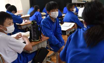 周りの生徒同士で相談しながら「対話的な学習」を進めています。