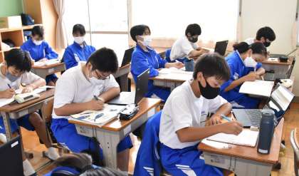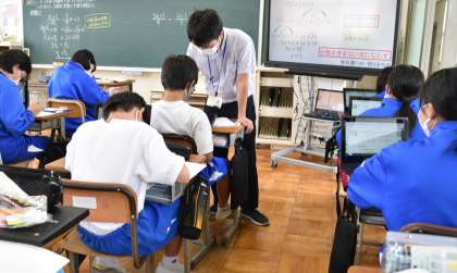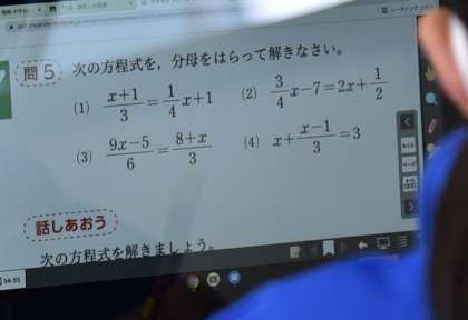 「方程式の解き方」について、K先生から説明を受けた後、練習問題に取り組んでいます。