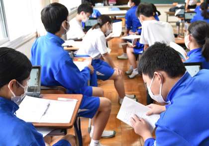 ほとんどの生徒が、周りと相談しながら思考を深めていきます。