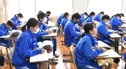 「中部地方」の学習で、「黒部ダム」について地図帳で位置を確認しています。