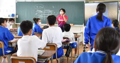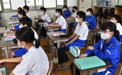 みんなでO先生に注目している……ように見えますが、一人一人が自分の呼吸の回数を数えているところです。