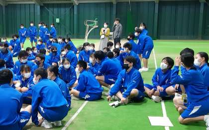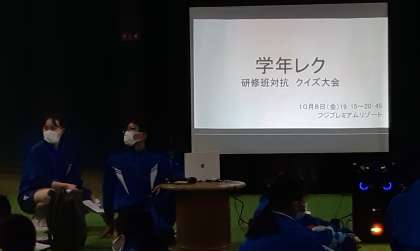 スクリーンを使って出題されるクイズに、富士サファリパークで行動を共にした「研修班」ごとに臨んでいます。