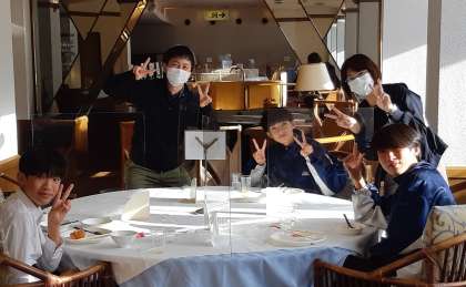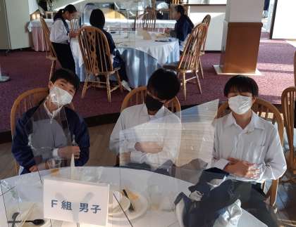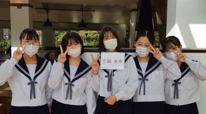 誰もいなくなり、先生から声をかけられても余裕のピース。(E組男子)