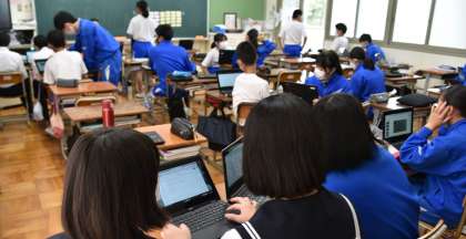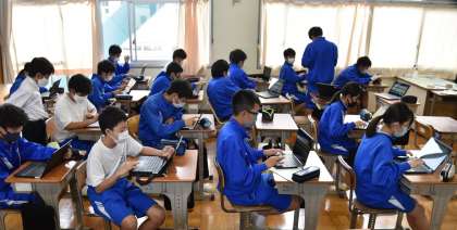 「LT発表」担当の1・2年生は、それぞれの教室で活動しています。