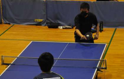 画像は中学生を相手に奮闘している2人の様子ですが、A先生については、常滑中学校のMコーチとの対戦もありました。