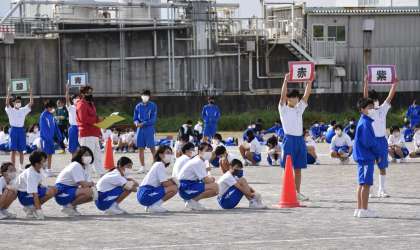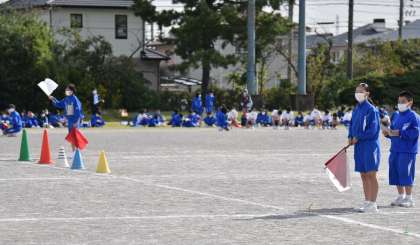 リレーの審判や綱引きの集合係を務める生徒たちです。