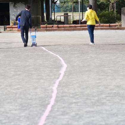 体育祭当日、保護者の方の観覧OKのエリアはこの線までです。