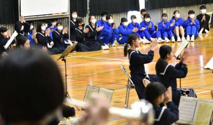 「学園天国」では、部員たちに合わせて、体育館にいるスタッフの生徒たちがノリノリで手拍子を送りました。(画像3枚目)