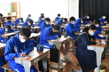 下を向いているのは、感想等を用紙に書き込んでいるためです。