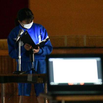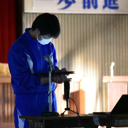 ただ原稿を読むだけでなく、教室の生徒たちに語りかけるような様子も見られます。