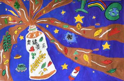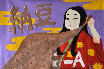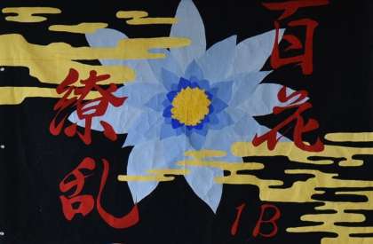 クラスごとに制作に取り組んできた学級旗が完成し、各学年の廊下に飾られています。