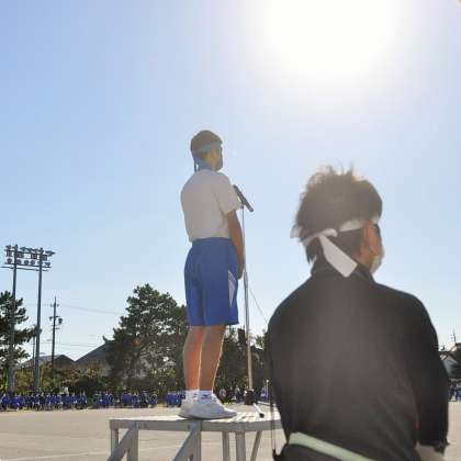 太陽がまぶしく照りつけていますが、やはり風が強く寒さを覚えるスタートです。