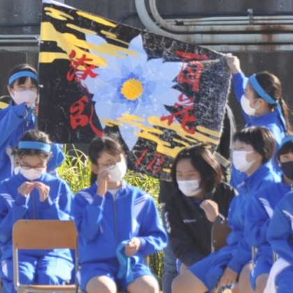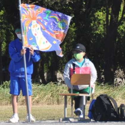 午後からも、学級旗を使って応援をする様子が見られました。