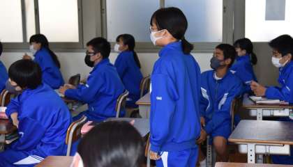 「主語」ではなくて「主部」、「述語」ではなく「述部」などの考え方について、A先生から説明を聞いています。