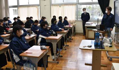 12/17(金) 2A職業講話 公開日 2021/12/17 更新日 2021/12/17 ◇校長室より 6時間目は、別の方からのお話です。 A組は、自動車部品を製作している「エバー」のお二人です。 メインでお話をされたのは、入社2年目という吉田さんです。 教室の前に、金属プレスの機械を持ってきてくださいました。 いいね(0)