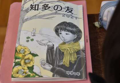 ちなみに「知多の友」は知多半島の中学生みんなが使う教材で、表紙の絵を描いたのは1F担任のK先生(美術)です。(3学年すべて)