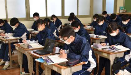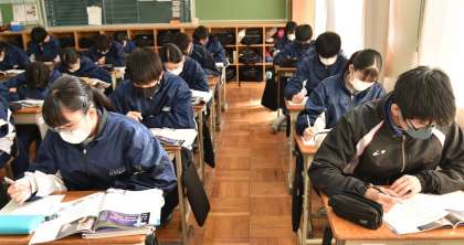2/9(水) 3E英語 公開日 2022/02/09 更新日 2022/02/09 ◇校長室より 「A Graduation Gift from Steve Jobs」という文章の読み取りです。 M先生から学習プリントが渡され、その中の一つの問題について「3分で」と指示を受けました。 長い文章ですが、頑張って読んでいます。 いいね(0)