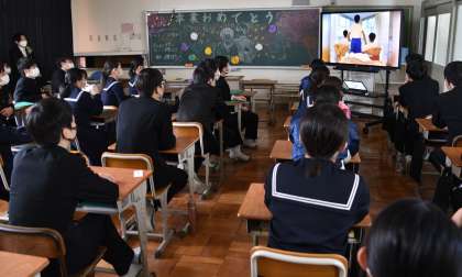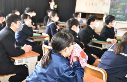 タオルやハンカチを顔に当てながら見ている生徒もたくさんいます。