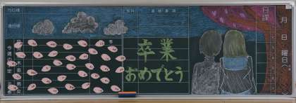 黒板全体を使って大きく描かれています。