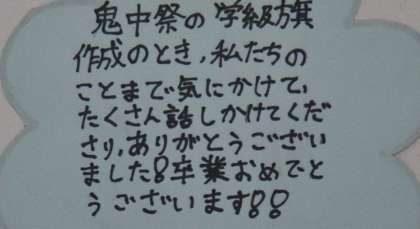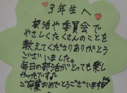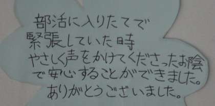 いろいろなことを教えてくれたり、優しく接してくれたりしたことへの感謝もたくさん書かれています。