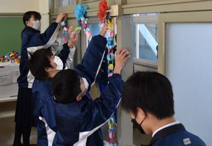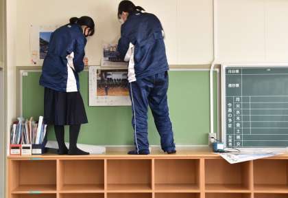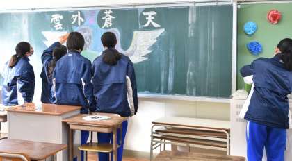 黒板に描いたアートが消され、教室内の飾りが外されていきます。