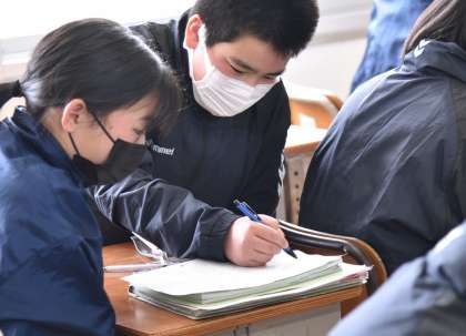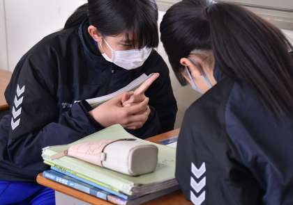 周りとの教え合い・学び合いの活動をする生徒たちが目立ちます。