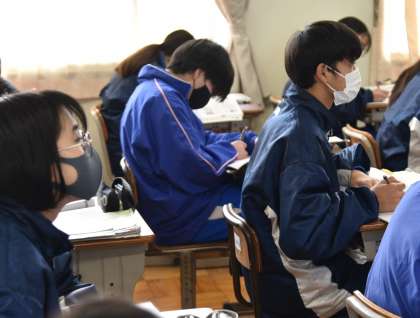 気付いた瞬間「びっくりした〜」というつぶやきが聞かれ、生徒たちから少し笑いがこぼれましたが、またすぐに真剣に授業に向かう姿勢に戻りました。