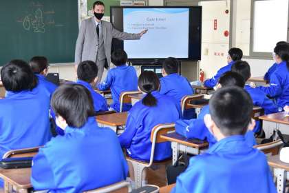 なお、英語のT先生もJ先生とは今日が初対面なので、自己紹介の内容を生徒と一緒に見るようなシーンが見られました。