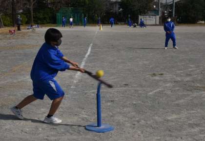 野球に似た「ティーボール」に取り組んでいます。
