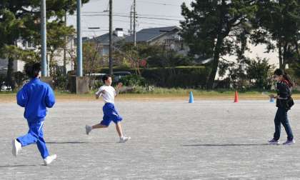 画像3枚目は、チームの代表者が駆け足でO先生に試合結果を報告しに向かっているところです。