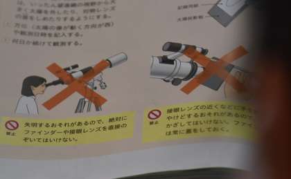望遠鏡を使って太陽を観察する場合の注意事項についても、教科書等から学びました。