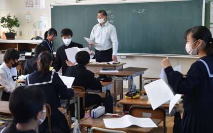「変化と対応」の評価テストが返却され、答え合わせをしていきます。