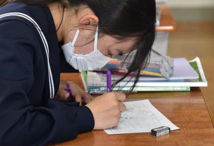 K先生から「紫色を準備して」「○○にハリケーンを書き込みます」などと指示を受け、忠実に従っています。