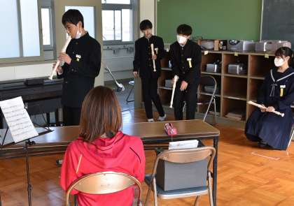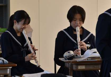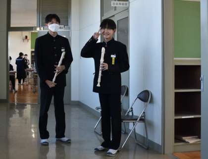 テストを待つ生徒は会場内にも廊下にも音楽室にもいますが、それぞれの過ごし方で時間を使っています。