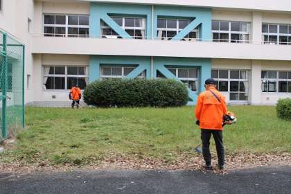 鬼崎中学校は広大な敷地で緑も多いため,本当に除草が大変です。(元校務主任の時の経験から)
